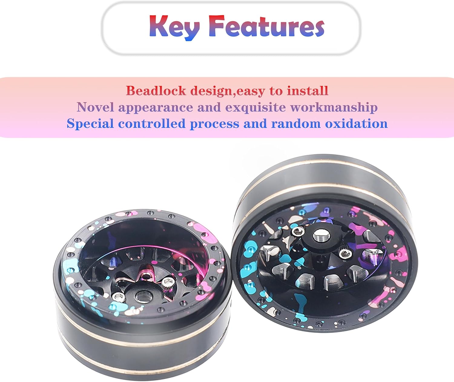 Key Features: Beadlock design,easy to install Special controlled process and random oxidation Made of high quality aluminum and brass, duarable and high crush-resistant Novel appearance and exquisite workmanship Offer additional weight at the lowest point of your vehicle to help maximize stability Specifications: Material: Brass and aluminum Color: Multicolored Outer Diameter: 31mm (1.22in) Width: 13.5mm (0.53in) Hex Hub: 7mm (0.28in) Each Weight: 26g/pcs Package List: 4 * 1.0 Beadlock Wheels 1 * Screw Set 1 * L Wrench