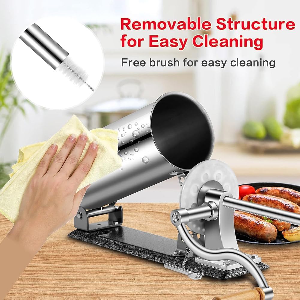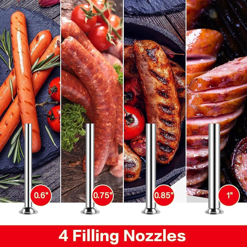 Features: The sausage stuffer is widely used in home kitchens and commercial sausage making, perfect for making sausages, hot dogs, bratwurst, hot links and many more. The sausage maker body is made of food grade stainless steel, which makes it for long-lasting usage. The horizontal meat sausage feature the fixed clips base horizontal design, the solid base design to ensure the stable during sausage making. Specification: Name: Sausage Filling Material: Stainless Steel Tube material : ABS plastic food grade + stainless steel Capacity: 4L The size of tube:Φ15mm,19mm,22mm,25mm Uses: Stuffing Sausage, Sausage Package includes: 1x 4L sausage stuffer 4x sausage stuffing tubes