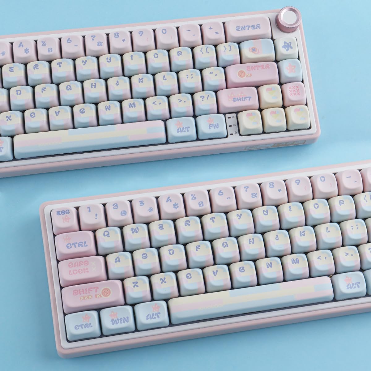 Introducing our adorable Pink MOA Profile PBT Keycaps, designed to bring cuteness and style to your keyboard! Crafted with high-quality materials, these keycaps feature a double-shot PBT construction, ensuring durability and a satisfying typing experience. The vibrant pink color adds a touch of personality to your keyboard setup, making it stand out from the crowd.With the MOA profile, these keycaps offer a comfortable and ergonomic typing angle, reducing strain on your wrists during long typing sessions. The cute design, inspired by anime and Japanese culture, will surely delight any fan. Whether you're a gamer, typist, or simply want to add a touch of kawaii to your keyboard, these keycaps are perfect for you.Compatible with most keyboard models, including RK61, Keychron, and 60% keyboards, these keycaps provide an easy way to customize your keyboard to match your style. The dye-sublimated legends ensure that the keycap legends won't fade over time, maintaining their vibrant and crisp appearance.Upgrade your keyboard with these Pink MOA Profile PBT Keycaps and enjoy a unique and personalized typing experience. Perfect for Valorant enthusiasts, anime lovers, or anyone who appreciates cute and stylish keycaps. Don't miss out on the chance to express your individuality and make your keyboard truly yours!