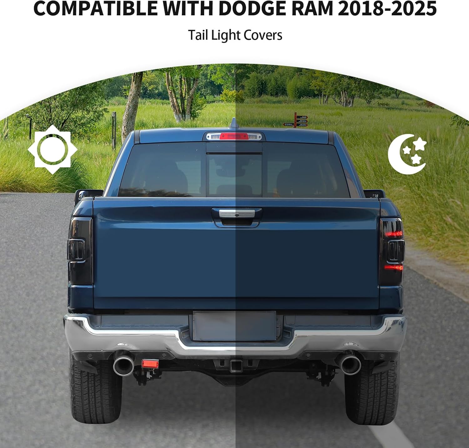 Fitment: - Compatible with Dodge RAM 2019 2020 2021 2022 2023 2024 up specific brake light model. Please check our pictures before ordering. Features: - Color: Smoked Black - Hassle-Free Installation - Custom Show Car Styling - Durable ABS Material Smoked Black Finish. Crafted from high-quality, impact-resistant ABS, these taillight covers are built to withstand the rigors of off-road adventures. They offer protection against dirt, debris, and minor impacts, ensuring your taillights remain intact and functional. The smoked finish allows the visibility of the rear lights to shine through. Weather-Resistant. Built to endure the elements, these brake light covers feature a UV-resistant coating that protects against fading and discoloration, ensuring they maintain their striking appearance even after prolonged exposure to sun and rain. Hassle-Free Installation. Designed for a hassle-free, no-drill installation, these covers easily adhere to your existing taillights using automotive-grade adhesive. The precise fit ensures a seamless look, and installation can be completed in minutes. Installation Guide: 1. Use rubbing alcohol to clean the taillights. 2. After the alcohol has dried, heat the tape with a lighter or heat gun. 3. Paste the taillight cover in the corresponding position. 4. Press the taillight cover firmly into place. Package Included: - 2 x Smoked taillight covers