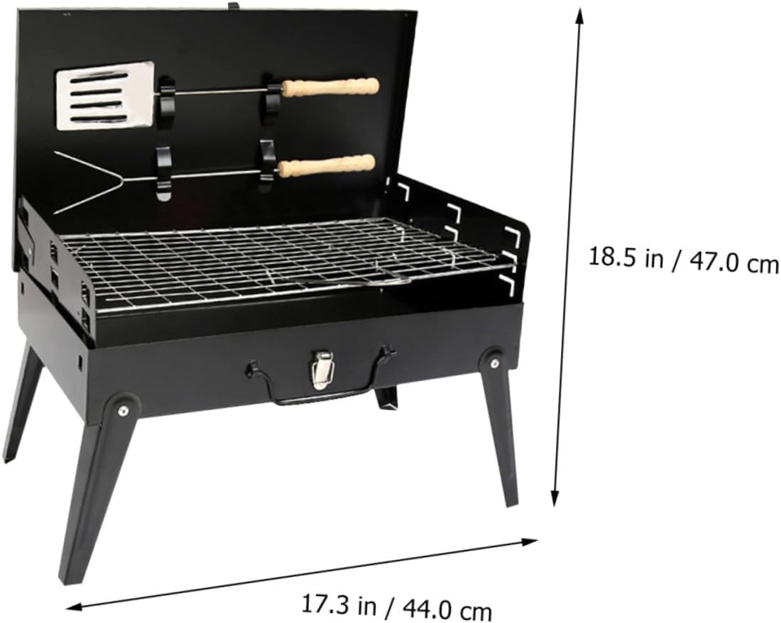 Package Include 1 x set of BBQ grill Features - Color: Black. - Material: Iron. - Size: About 44.00X27.00X47.00cm/17.29X10.61X18.47inch. -Product Info:Portable barbecue stove - Multiple heights can be adjusted to choose the right grill height camping grills. - With handles, it can be folded, easy to carry and more convenient camping accessories. - Suitable for outdoor camping, fishing, climbing, etc. Mini barbecue stove stove grill. - Box type barbecue grill with handle design, portable and suitable for outdoor use foldable grill. - Each part can be disassembled for easy cleaning and maintenance portable grill for beach.Goods Informationportable grill Made of thickness material, solid and resistance, durable and .grill accessory Easy to store and to carry to anywhere you want.foldable grill Comes with handle, fold the legs and it is ready to go.stove grill travel Both sides of this barbecue grill make the airflow well