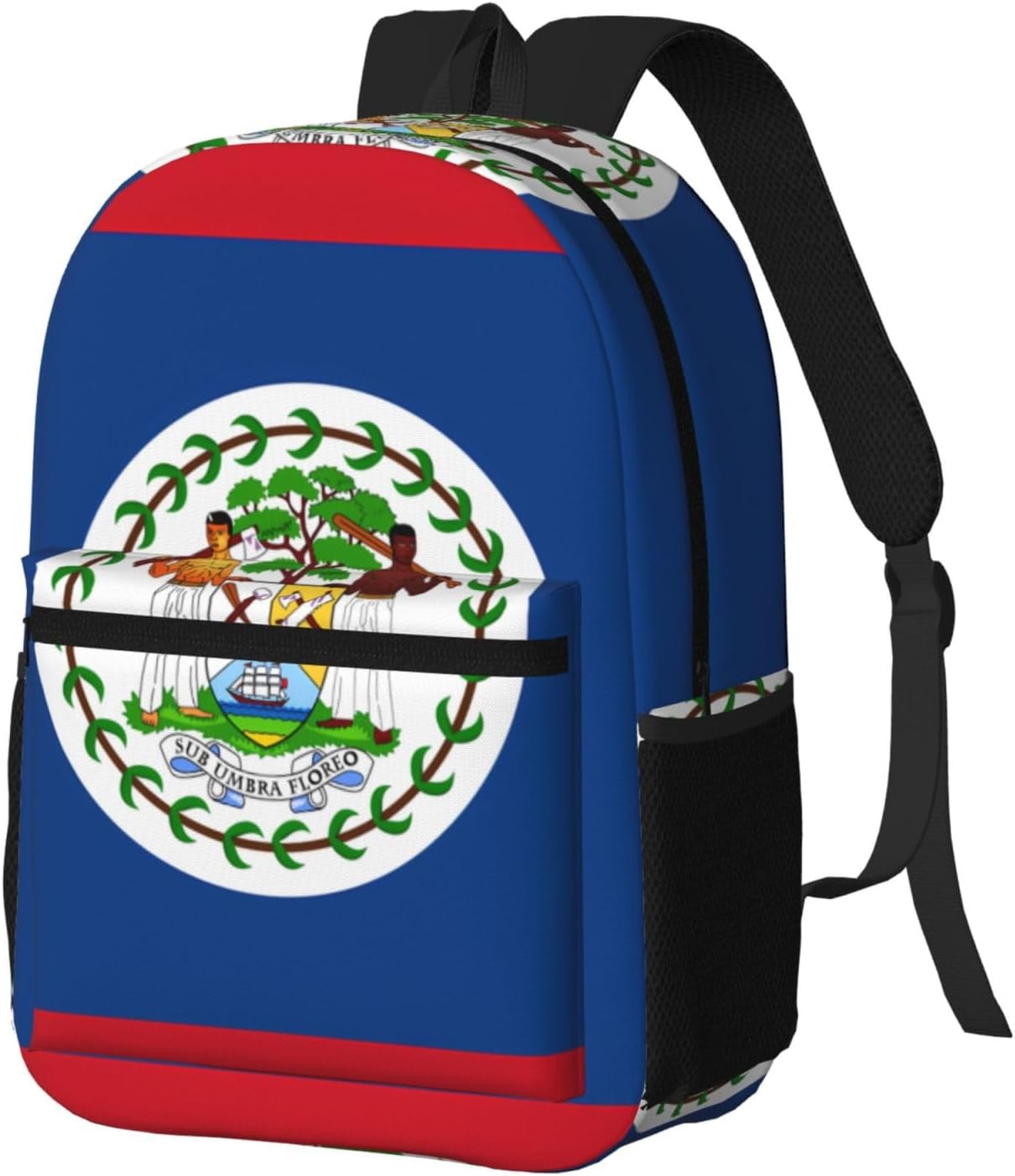 Our Belize Flag backpack with pockets is made of polyester and 600D Oxford cloth, ensuring sturdiness, wear resistance and crispness. The front piece adopts full-width print design, which is fashionable and lightweight, and comes with adjustable widened breathable shoulder straps for back comfort. The large-capacity design includes 1 main pocket, 1 three-dimensional patch pocket and mesh pockets on both sides, which are convenient for storing umbrellas, water bottles and other items. It is suitable for a variety of scenarios such as school, work, business trips, travel, sports, etc.