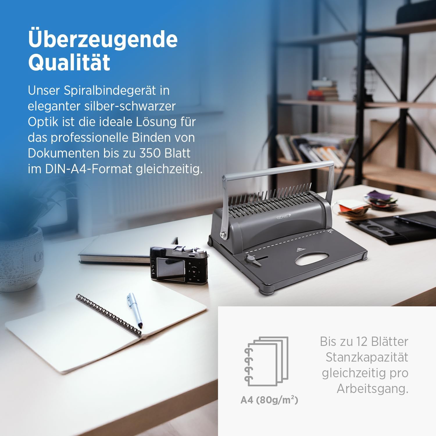 Genie CB 850 spiral binding device (up to 350 sheets, DIN A4, incl. 75-piece starter set) silver/black